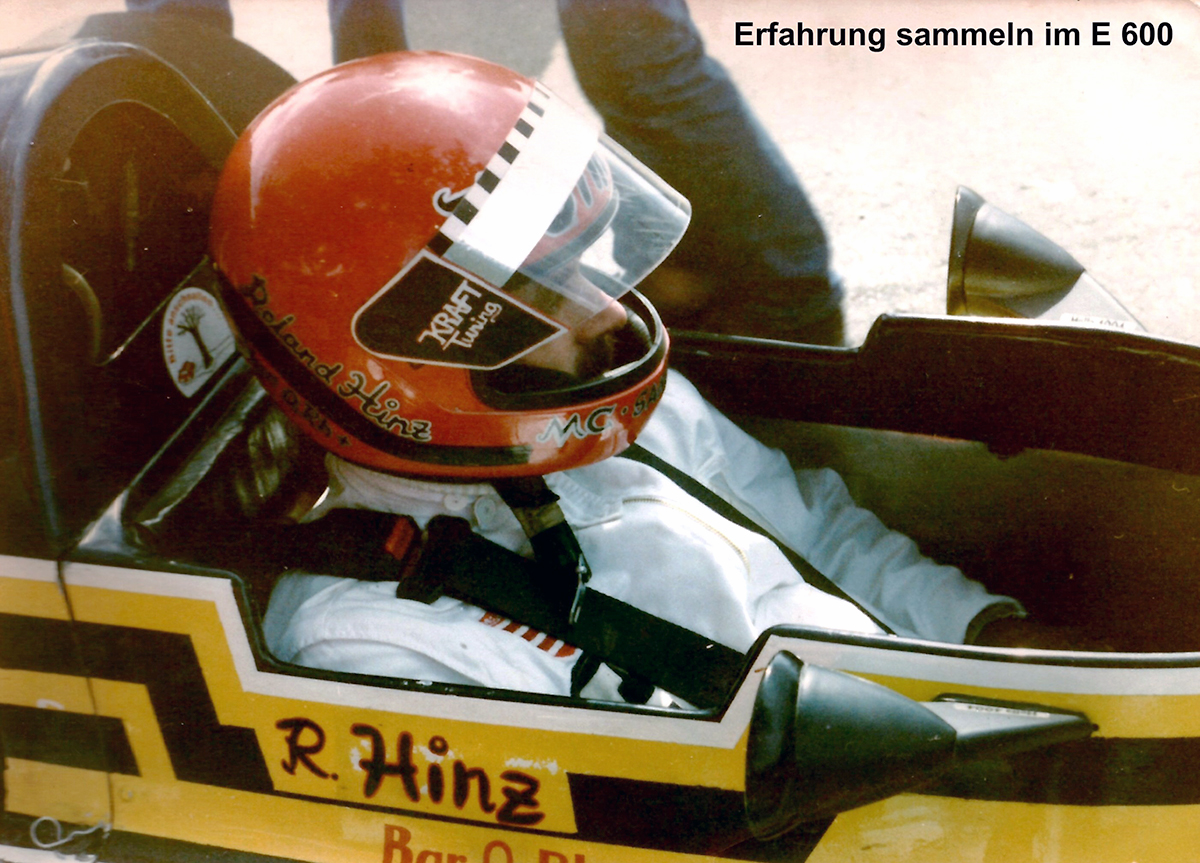 Ab 1983 - 1984 sammelte Roland Hinz seine ersten Erfahrungen für den Formelrennsport im Rennwagen der Klasse E600. Das war eine Rennserie, die insbesondere für Einsteiger gedacht war, um ihnen das Gefühl und die Sicherheit für einen Rennwagen zu geben. Anders als Rallyefahrzeuge und Karts haben einsitzige Rennwagen wesentlich andere Fahreigenschaften.